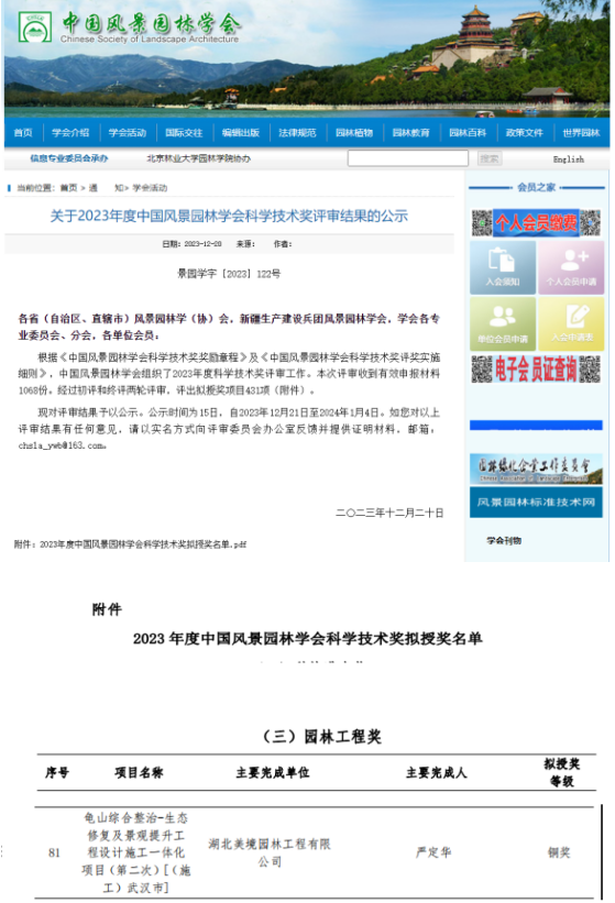 喜報(bào)!林業(yè)集團(tuán)龜山項(xiàng)目榮獲2023年度中國(guó)風(fēng)景園林學(xué)會(huì)科學(xué)技術(shù)獎(jiǎng)